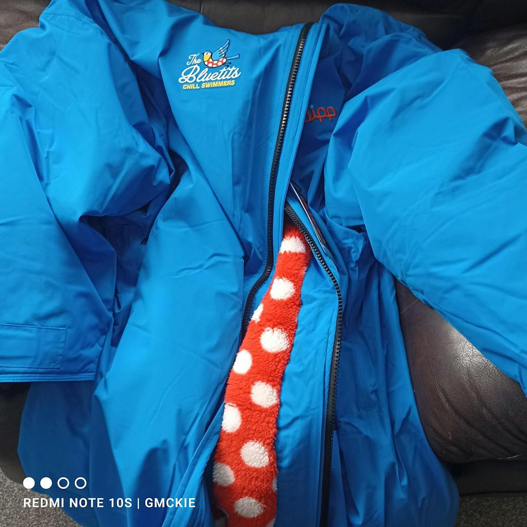 Lovely warm coat that keeps you cosy and dry after sea swimming or dog walking and has helpful deep zip pockets that hold a lot of things!